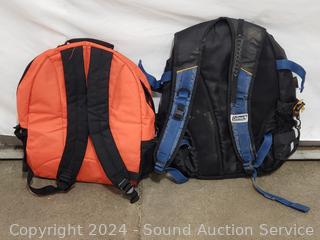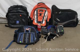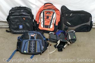 Ultimate fanny pack, High Trails backpack, intel Pentium Laptop backpack, Ogio satchel, Coleman backpack. Signs of use.