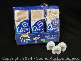Floss, 2 appear full, 1 appears to be mostly full. 3pk 1750ct total of Q-Tips.