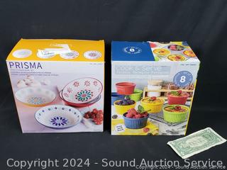 Lot #0239: 4pc Prisma Dinner Bowl Set & 7pc Over & Back Ramekin Set