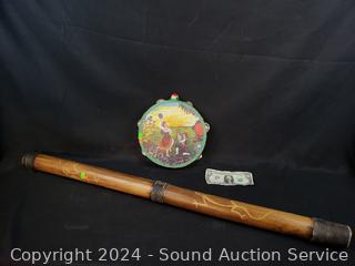 38.5" x 2-1/8" Didgeridoo, 9" Tambourine.