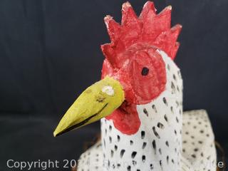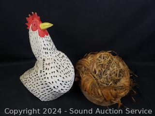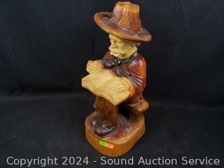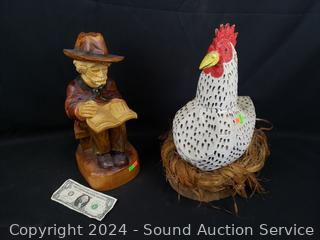 Lot #0175: Carved Wood Man Reading a Book & Hen on a Nest