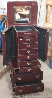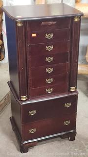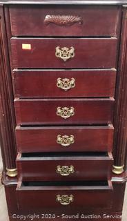 Lot #0107: Cherry Powell 8 Drawer Jewelry Chest w/Necklace Racks & Mirrored