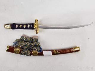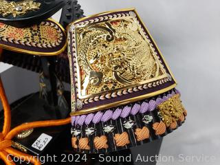 Lot #0127: Miniature Samurai Helmet & Sword w/Black Laquered Storage Display Box