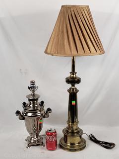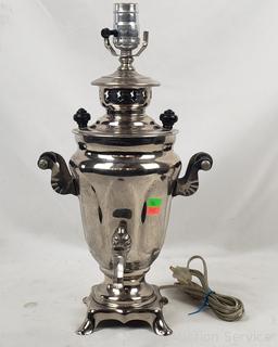 Lot #0186: Vtg. Percolator Dispenser Lamp & Brass Lamp