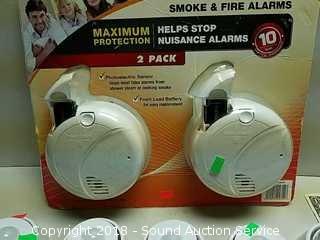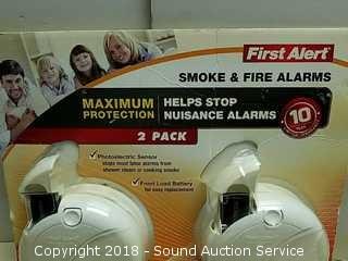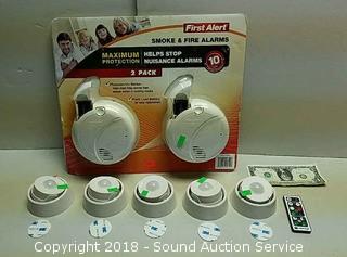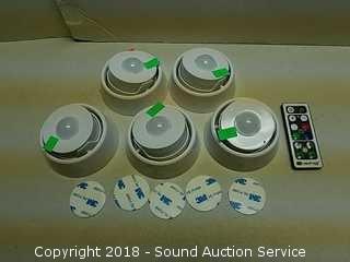 Lot #0130: NEW 2 Pack Smoke & Fire Alarm w/5 LED Puck Lights