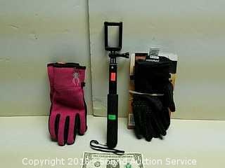 Lot #0135: Bluetooth Selfie Stick & Medium Gloves