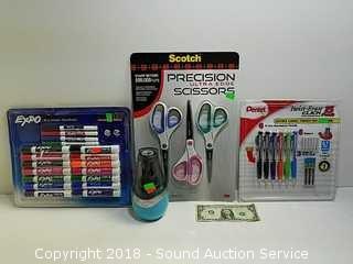 Lot #0211: Markers, Pencils, Scissors & Pencil Sharpener