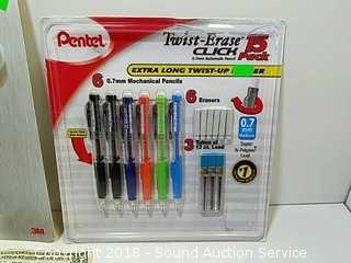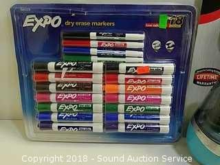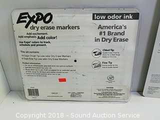 Dry erase markers package has been opened, but is complete. Pencil sharpener has been used. Refer to photos for more information.