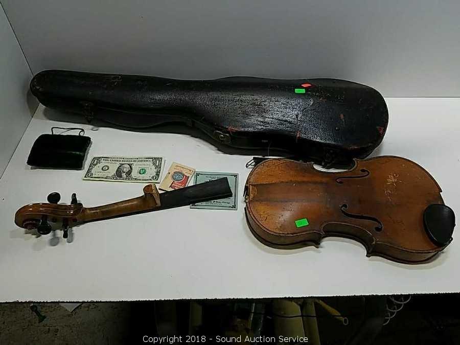 Lot #0257: Vtg. Violin/Fiddle w/Case - Parts or Repair