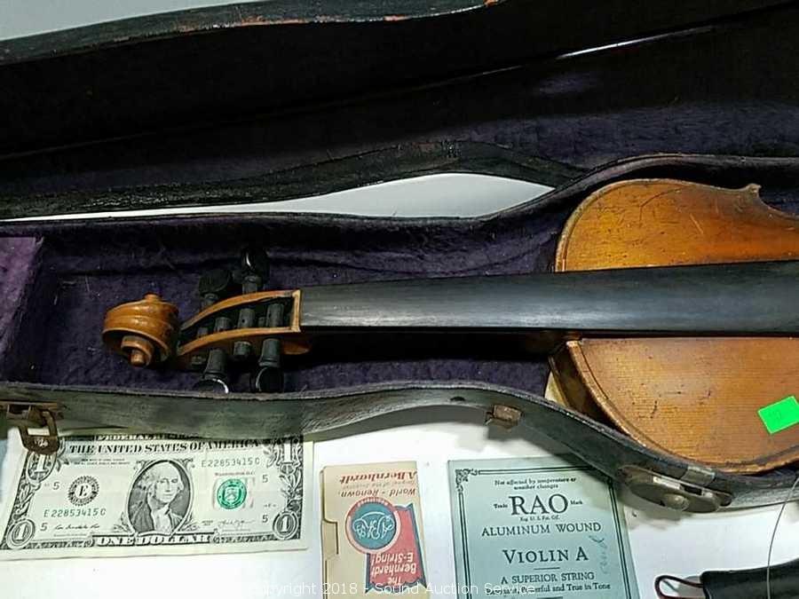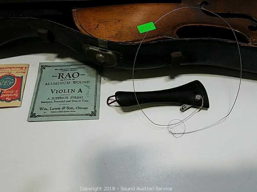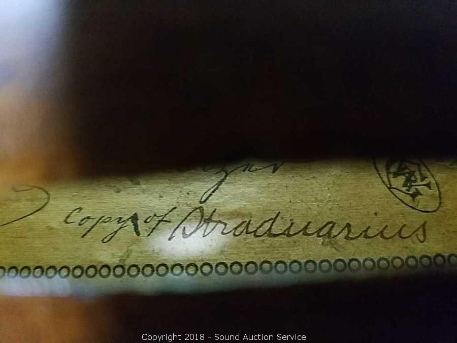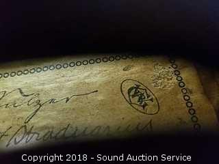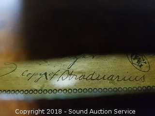 Comes with two violin strings and bow. Copy of Stradivarius. Believe it to be from 1940's to 60's? Refer to photos for more information.