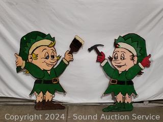 Lot #0277: 2 Painted Wood Elf Painter & Carpenter Signs