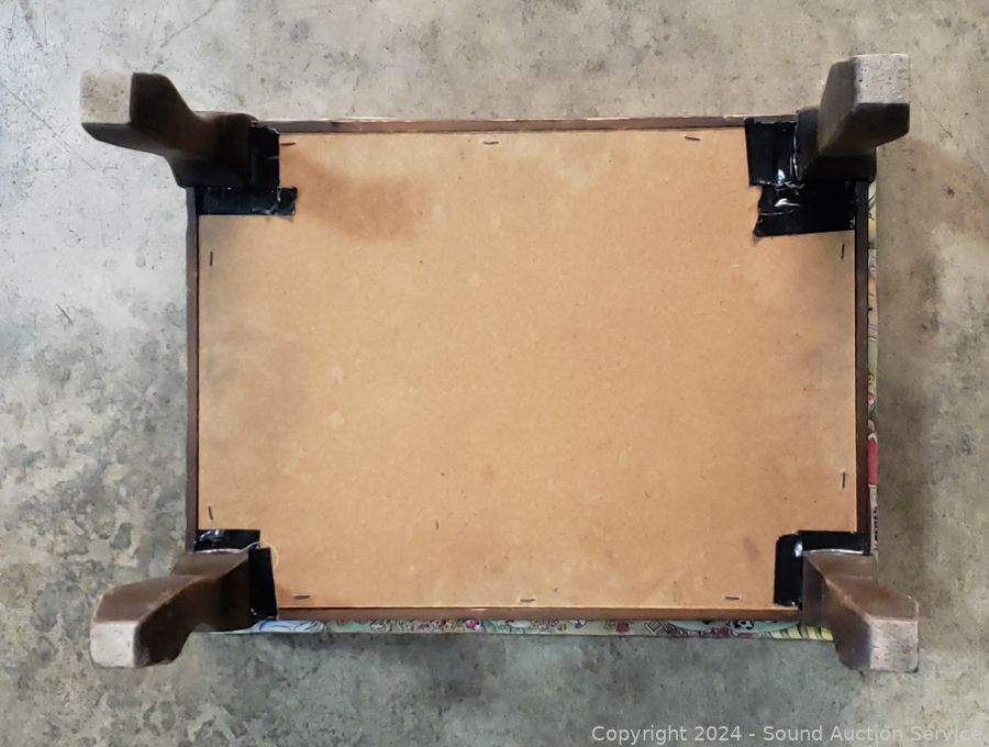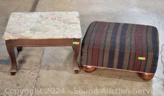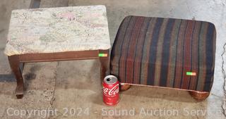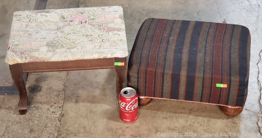 One is covered in pet hair, the underside fabric is loose. 7.5" H x 16" x 13" & 10" x 16" x 12".