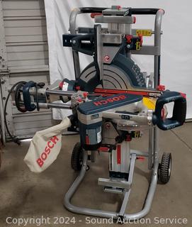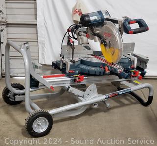 Lot #0016: Bosch 5412L 12" Compound Miter Saw w/Gravity Rise Rolling Jobsite Stand