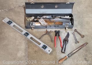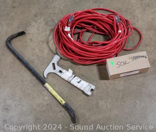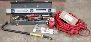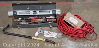 Lot #0262: Craftsman 19.5" Toolbox, 100ft Extension Cord, 2ft Level & Crowbar