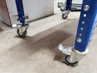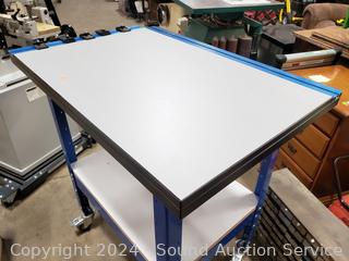 Locking casters. 37.25" H x 36" x 24". Light wear from use. Overall great condition.