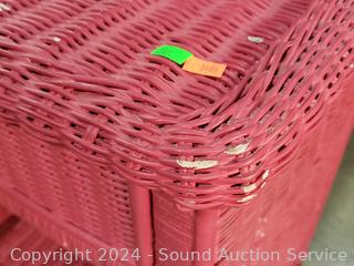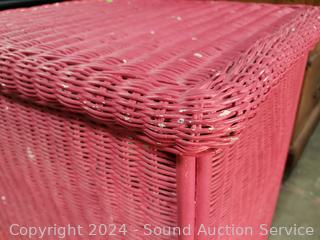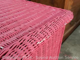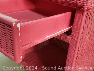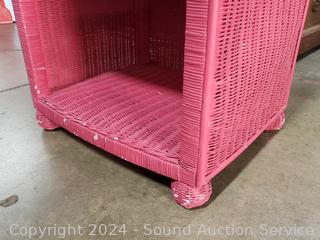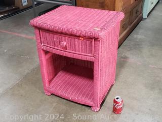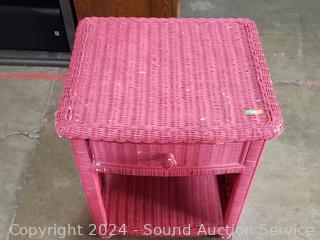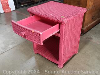 Lot #0267: Magenta Painted Wicker Woven Single Drawer Side Table