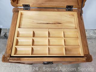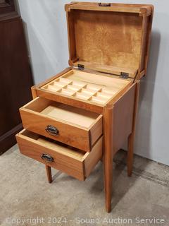 Lot #0025: Mahogany Lift Top 2-Drawer Sewing Chest