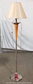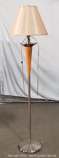 Lot #0269: MCM Style Stainless/Wood Floor Lamp