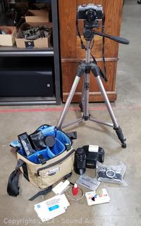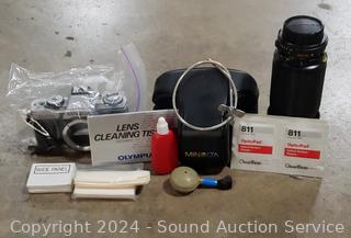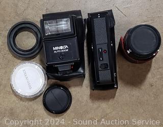 Lot #0154: Minolta XG-M Film Camera w/Lenses, Tripod, Accessories, Bag