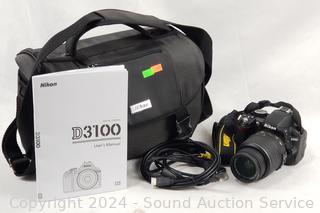 Lot #0112: Nikon D3100 Digital Camera w/Lens, Manual, Bag