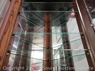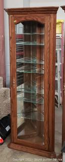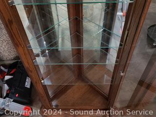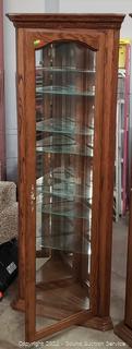 Lot #0041: Oak Mirrored Lighted 7-Shelf Corner Curio Cabinet