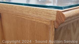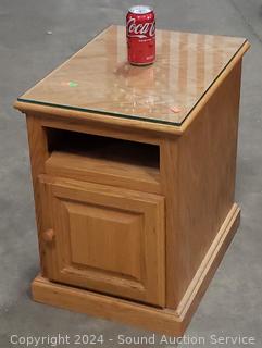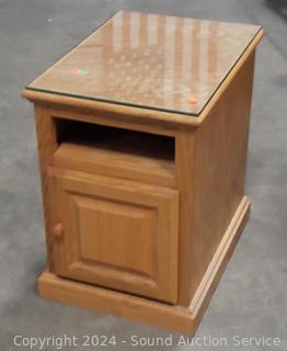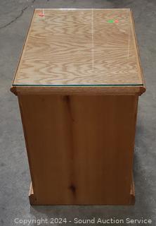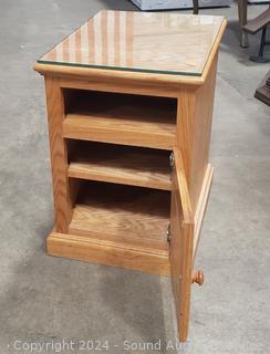 21" H x 15" x W x 20" D. Some minor wear to finish, overall great condition. Solid wood Construction.