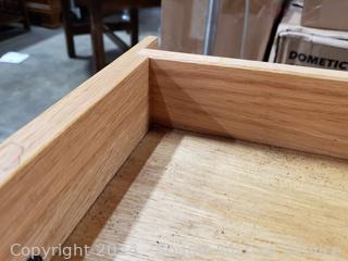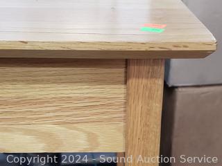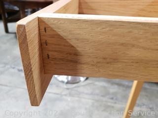 Has a split in the top, some light wear to finish. 25" H x 23" W x 17" D.