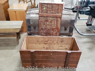 Lot #0322: Vintage Rustic Wood Crate & Trunk