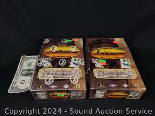 One boxes partially full of loose cards, 1 box is factory sealed. Refer to photos for more details.