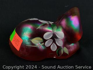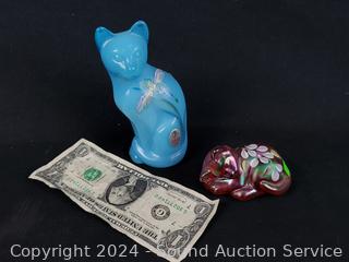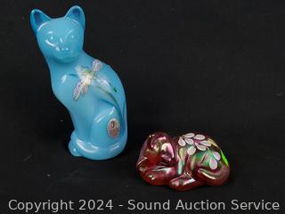Lot #0143: 2 Fenton Hand Painted Cat Art Glass Sculptures