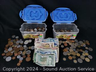Lot #0295: 2 Small Storage Boxes Full of Foreign Coins