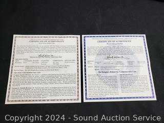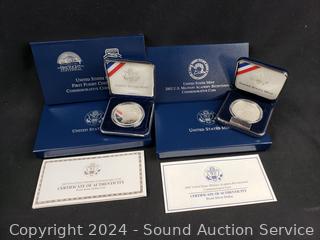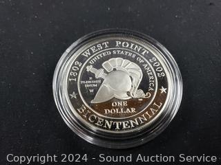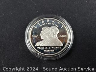 Both 90% Silver, 26.73g, limited to 500,000 with CoA's. First Flight Centennial Commemorative Coin & 2002 US Military Academy Bicentennial Commemorative Coin. ATTN: We are not coin or currency experts or graders, please use your own judgement when bidding.