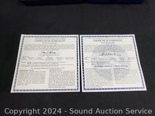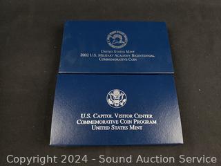 Both 90% Silver, 26.73g, limited to 500,000 with CoA's. US Capitol Visitor Center Commemorative Coin & 2002 US Military Academy Bicentennial Commemorative Coin. ATTN: We are not coin or currency experts or graders, please use your own judgement when bidding.