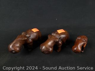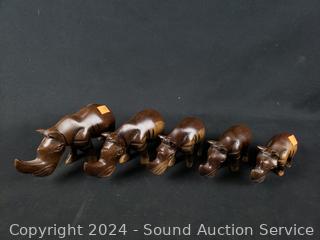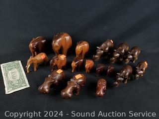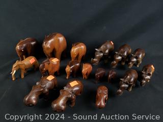Lot #0141: 17 Carved Wood Elephant, Rhino & Hippo Figures