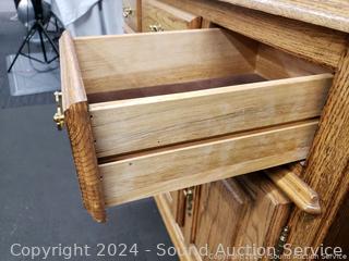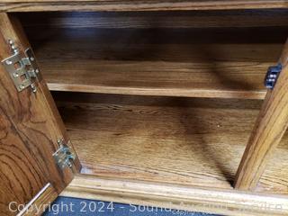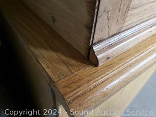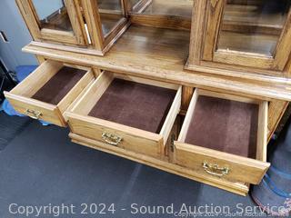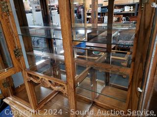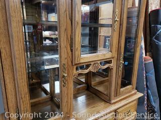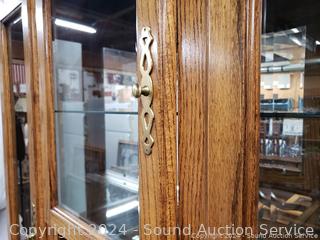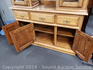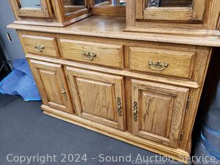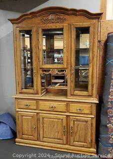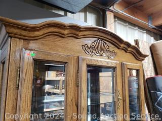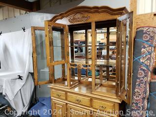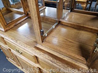Lot #0038U: 2pc Oak Lighted, Mirrored Hutch