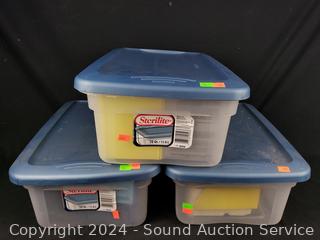 Refer to photos for titles, genre, etc. 6" x 10.5" x 16" totes with lids.