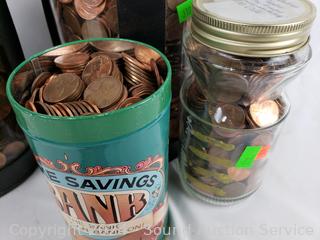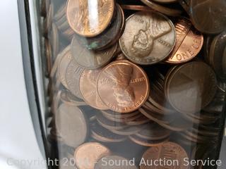 Lot #0310: 4 Jars of Assorted US Pennies - TW: 43.1lb