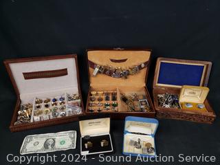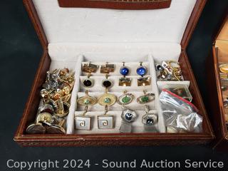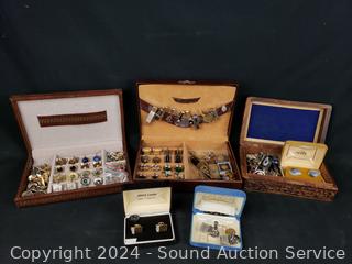 Lot #0194: 5 Jewelry Boxes Full of Men's Cufflinks, Tieclips