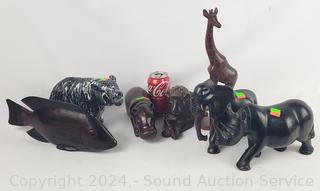 Lot #0134: 6 Carved Wood Animal Figures & Stone Figure