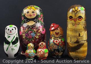 Lot #0125: 6 Wood Russian & Other Nesting Dolls