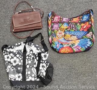 Some brands include Nine West, Icon, Eucalyptus, Bechamel, ESpirit & others. Purses, grocery bags, laptop bag, fanny pack, etc. Refer to photos for more details.