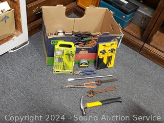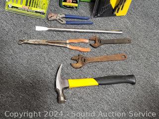 Hammers, hex keys, bits, drill bits, pliers, screwdrivers, etc. Refer to photos for more details.