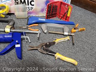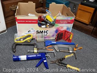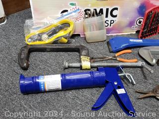 Ratchet straps, caulk gun, clamps, tape measure, multi-tool, staple gun, hand saws, hex keys & more. Refer to photos for more details.