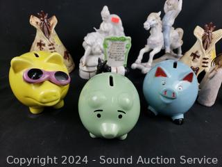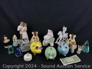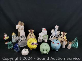 Lot #0159: Assorted Porcelain/Glass Willowtree, Coin Banks, Figures Decor