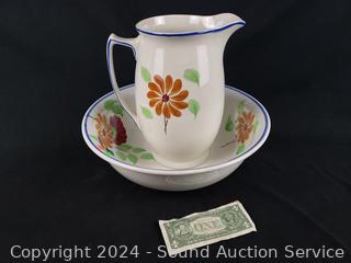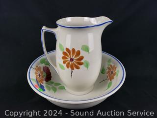 4.75" x 14.5" Dia. basin. Hand painted, some crazing.