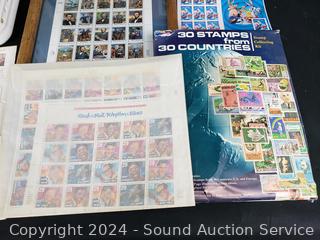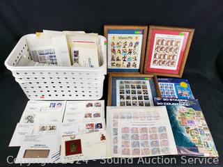 Framed stamp sheets, tons of Fist Day Covers, various stamp sheets. Refer to photos for more details.