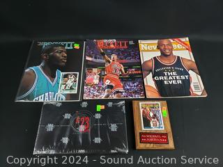 1992/1994 Becketts, 1993 Michael Jordan News Week Magazine, Sealed Upper Deck Michael Jordan 23 Card Set & CD Interview, Topps Reigning Scoring Leader Plaque Card. Refer to photos for more details.
