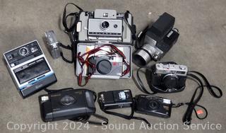 Bell & Howell Director Reflex Camera, Canon Power Shot S50 Digital Camera, Velbon CX440 Tripod, Travelite TR-1 Tripod, Kodak EK6 Camera, Polaroid 230 Land Camera, Polaroid Captiva SLR, Minolta Hi-Matic F Camera, Kodak Advantix 4100ix, Aiptek DV4500, Yashica MF-3 & more. All untested.