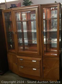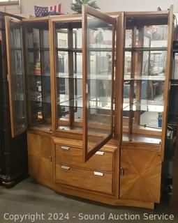 Lot #0005: 2pc MCM Lighted Mirrored Hutch