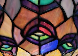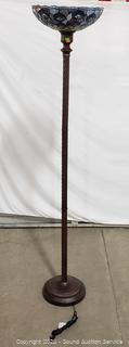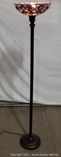 Lot #0024: Bronze Finish Stained-Glass Shade Floor Lamp